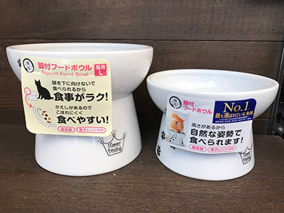 大人の猫が楽に食事できる高さ7.5㎝のお皿なので楽な体勢で食事ができる!