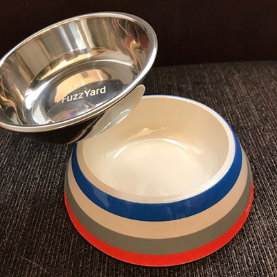 FuzzYardの食器はベッドやリード・ハーネスなどと同じデザインを使ってつくられていてとてもおしゃれ!